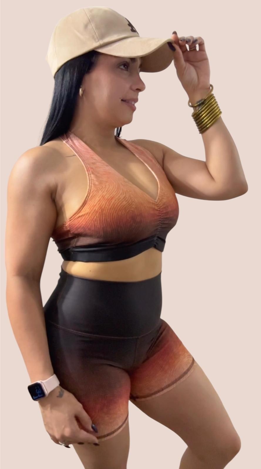 Set que moldea tu figura, es cómodo y tiene colores en tendencia. El top no tiene copas, pero no transparenta y el corte en curva de la espalda queda muy bello.